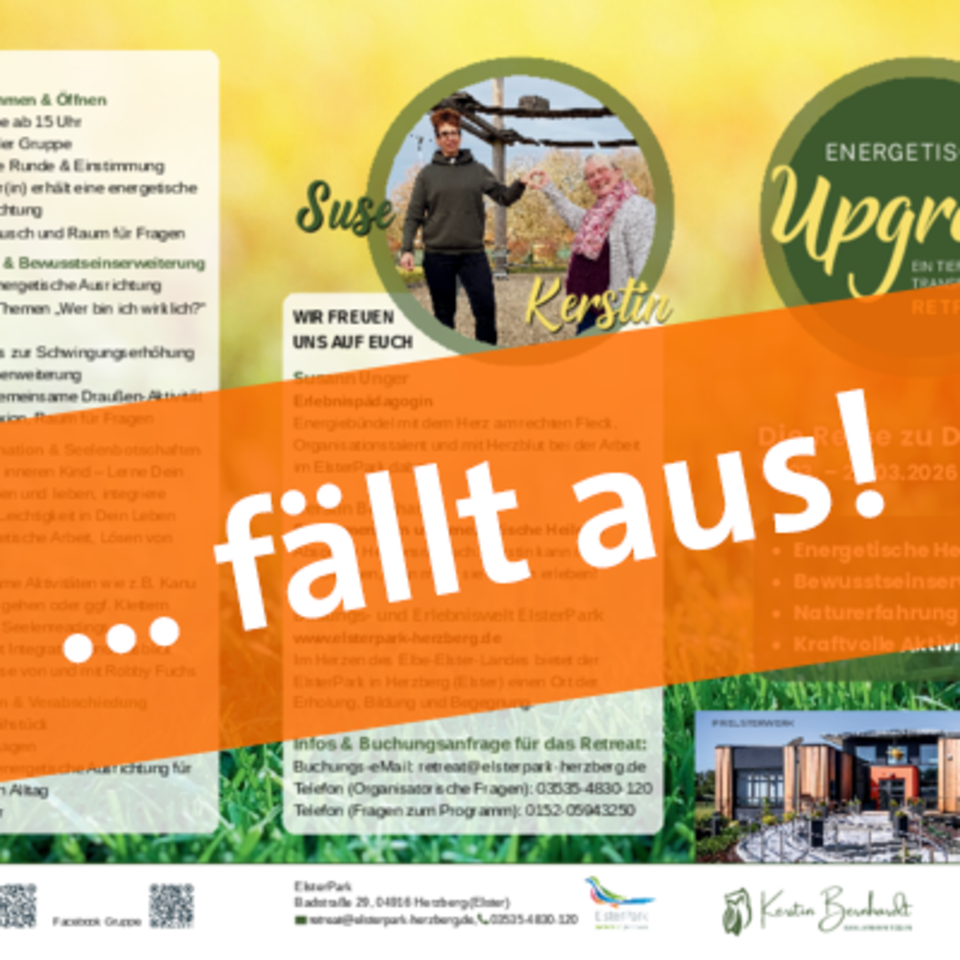 Infos & Buchungsanfrage für das Retreat: retreat@elsterpark-herzberg.de